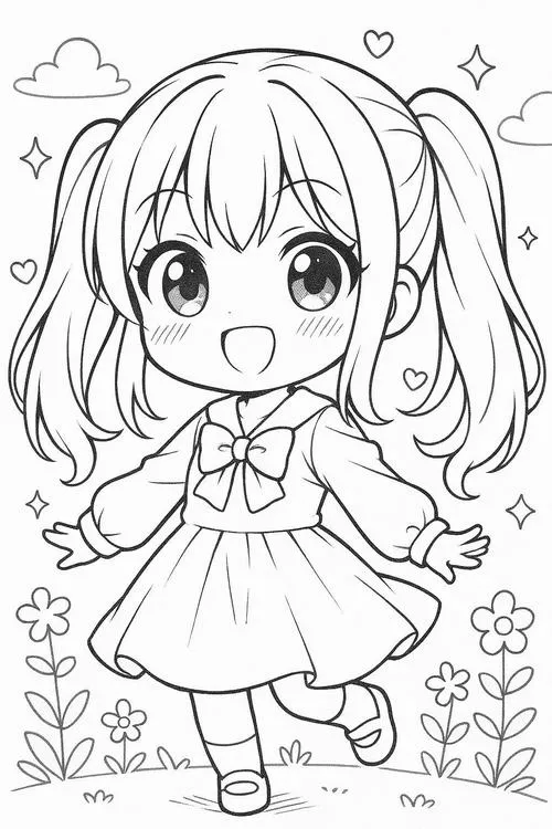 BST 92 Tranh Tô Màu Chibi Cute đơn giản nét to dễ tô bé nào cũng mê